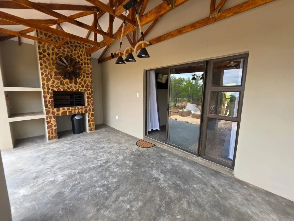 The 2 Bedroom Family Cabin is a cozy holiday home designed for comfort and relaxation in the bushveld. Featuring a warm fireplace as its standout feature, this cabin is ideal for families or small groups.