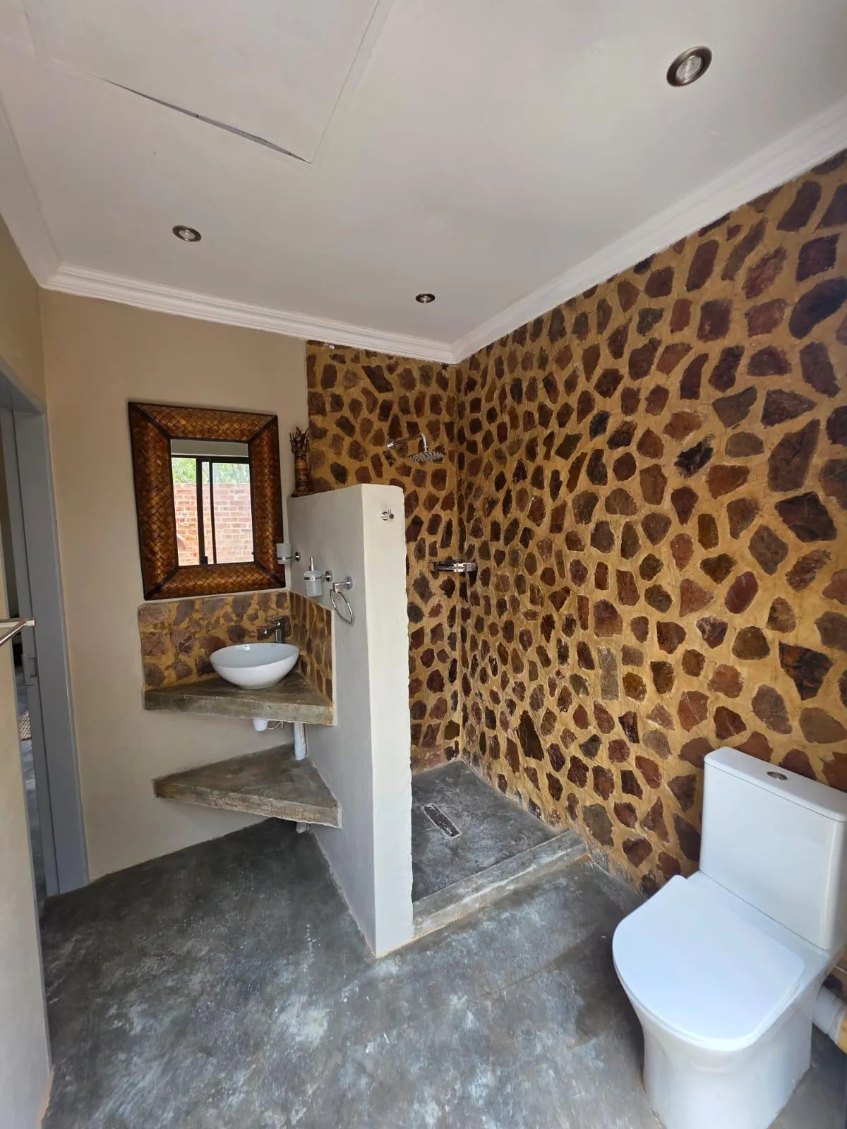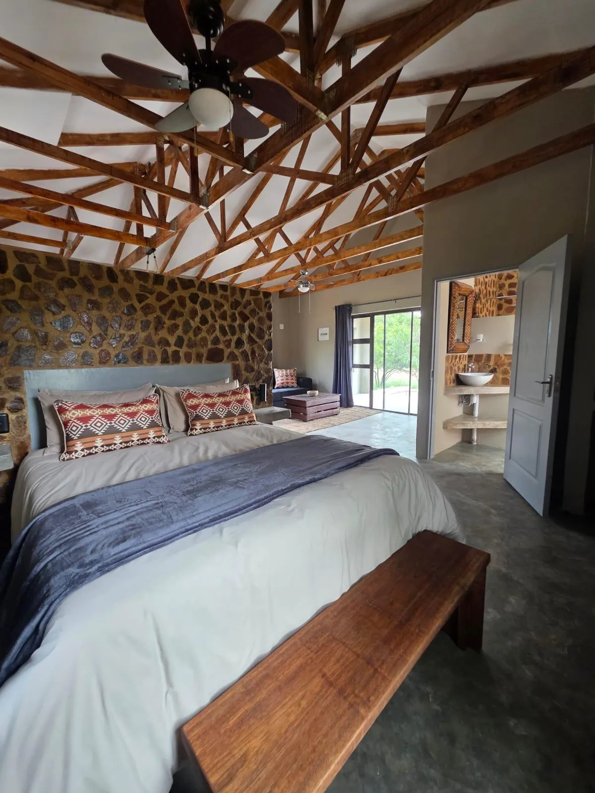 The Semi Off-Grid Bush Cabins offer a rustic yet comfortable retreat in the heart of the bushveld. Rented as a combined unit of three single-room cabins, this setup ensures privacy and seclusion, making it perfect for families or groups.