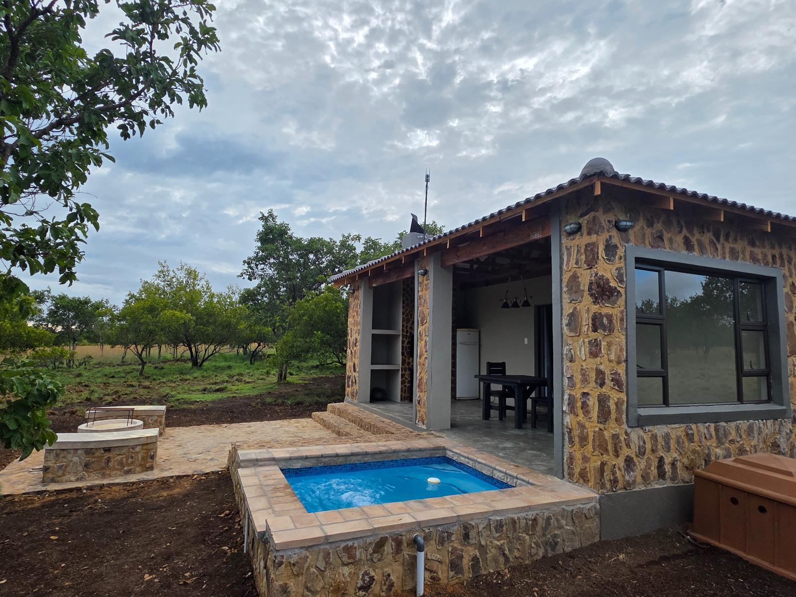 Each cabin is simple and cozy, with access to shared ablution facilities. Guests can enjoy a splash pool, breathtaking views of the surrounding bushveld, and outdoor braai facilities for relaxed evenings under the stars.