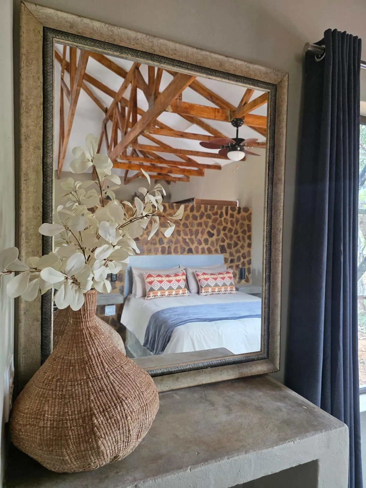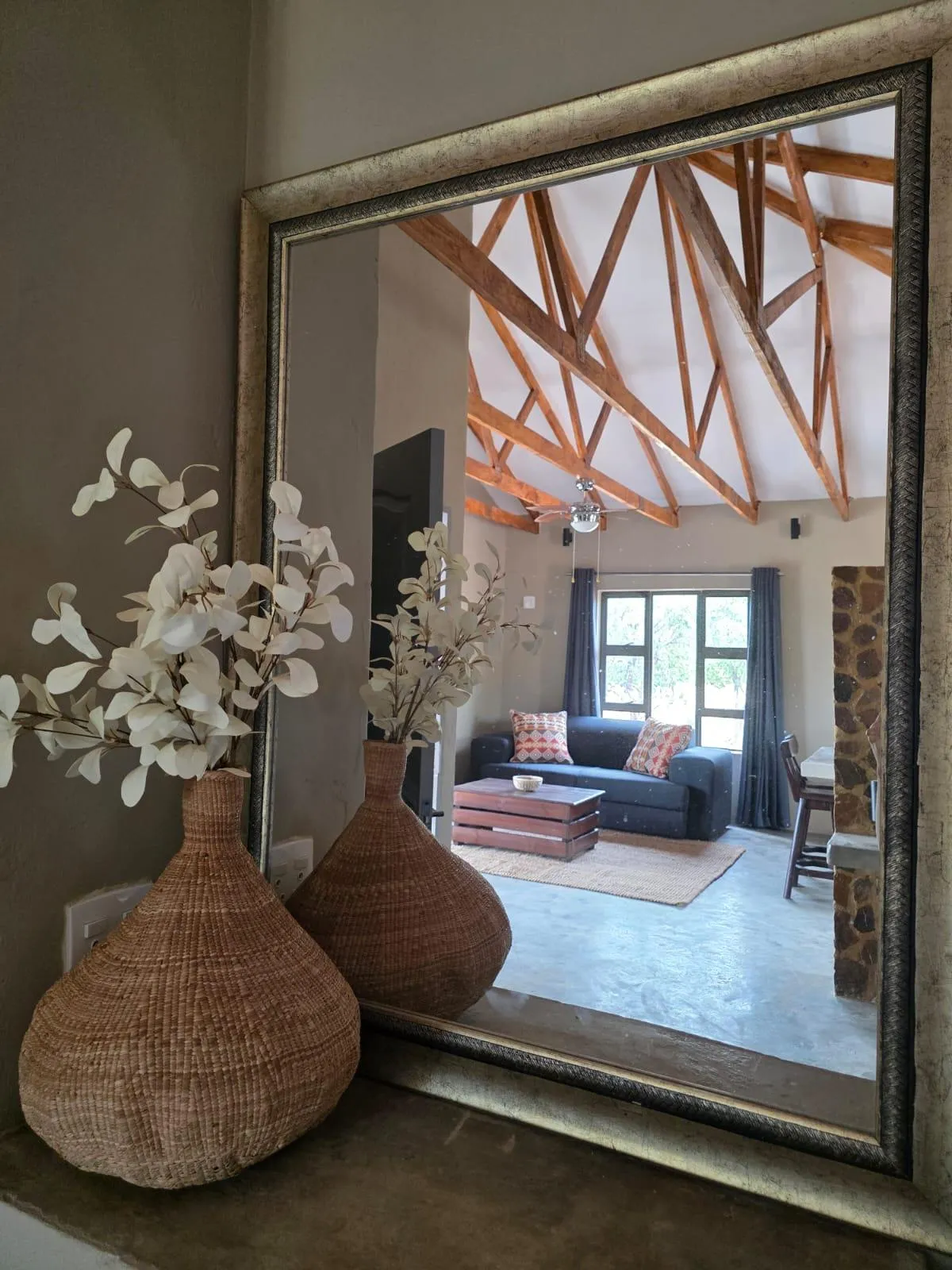 The Ostrich Nest Home offers a comfortable bushveld retreat designed for couples or small families. Air conditioning and tv's are standard addition in our luxury holiday homes. This cozy unit features a relaxing TV lounge, a dining area, and an indoor braai perfect for evenings spent together.